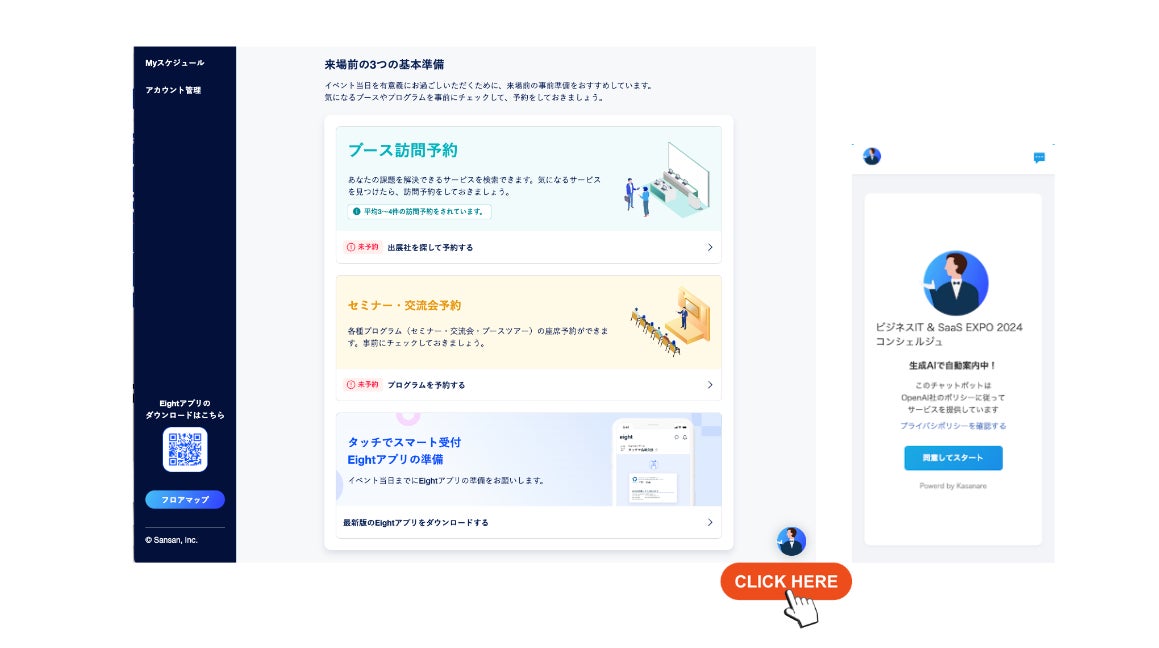 来場登録を行うことで、実際に「生成AIによる会場ガイド」をご体験いただけます。
